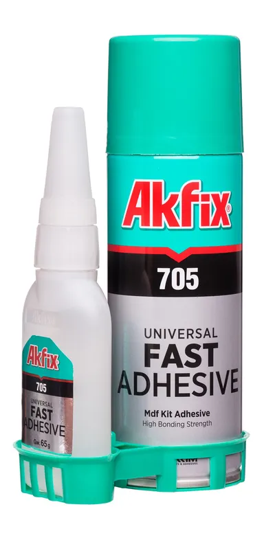 نام محصول : چسب 1. محصول :705برند :Akfixویژگیها: قدرت چسبندگی بسیار زیادی دارد غلظت خوبی دارد و برای استفاده روی سطوح عمودی مناسب است این چسب برای چسباندن موادی که سطح سخت و ناهمواری دارند بسیار مناسب است زیرا چسب به داخل سطح نفوذ نکرده و عمل اتصال با قدرت بیشتری انجام می شود. کاربردها:• چسب ام دی اف آک فیکس به طور ویژه برای چسباندن و تعمیرات سطوح چوبی تهیه و تولید شده است.• چسب ام دی اف آک فیکس برای چسباندن ام دی اف، چوب، الوار، لاستیک، اکثر انواع پلاستیک، چرم و ... بسیار مناسب است.• از این چسب به خصوص در مواردی استفاده می شود که نیاز به ایجاد اتصالات فوری باشد.طریقه مصرف:سطوح مورد نظر باید خشک، تمیز و عاری از هرگونه گرد و غبار و چربی باشند. فعال کننده را روی یکی از سطوح اسپری نمایید و کمی صبر کنید تا گاز آن تبخیر شود. سطح دیگر را به اندازه کافی چسب زده و به مدت چند ثانیه هر دو سطح را ثابت و محکم به هم بچسبانید. تاریخ مصرف:12 ماه پس از تولید. در محل خشک و خنک در دمای بین 5+ الی 25+ درجه سانتی گراد نگهداری شود. هشدار: • درب ظرف سیانواکریلات باید تا هنگام مصرف بسته بماند. درغیر این صورت چسب داخل ظرف خشک می شود.• سیانواکریلات به سرعت به پوست می چسبد.• در صورت تماس با چشم باعث ایجاد آسیب جدی می شود.• اسپری فعال کننده قابل اشتعال است. آن را در محل گرم قرار ندهید.